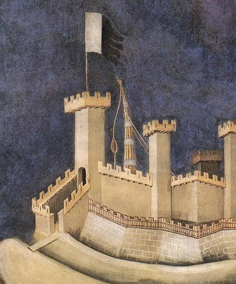 - Study a closeup of the stone-throwing machine from the artwork. Note the basket on a rope for holding the stone.