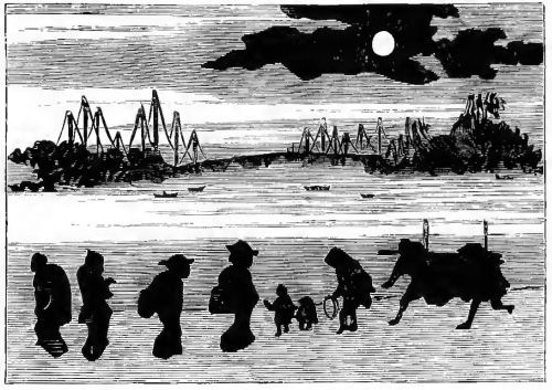 They saw a native ferryboat at one point, which was heavily laden with a mixed cargo. According to Fred's inventory, the craft contained a horse and half a dozen men, together with a lot of boxes and bundles, which were, as the auctioneers say, too numerous to mention. The head of the horse was firmly held by the groom who had him in charge, as it would have been a serious matter if the beast had broken away and jumped into the stream with all his load about him. A Japanese ferryboat does not appear the safest thing in the world, but, somehow, one never hears of accidents with it. If any occur, they must be carefully kept out of the papers.