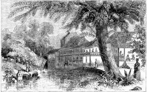 "I must not fail to tell you of a remarkable temple that we have seen. Not that any are unworthy of mention, but this one is certainly very curious. It is known as the Temple of Rengenhoin, and contains one thousand idols of large size. Then each idol in this lot is surrounded by several smaller ones, and there is one idol larger than all the rest. The whole number is said to be 33,333. We did not count them to make sure that the estimate was correct, but I should think that there must be thirty thousand at least, so that a few odd thousands, more or less, would make no difference. The whole of the inside of the temple is full of them, and each figure is said to have a particular fable connected with it. The temple is nearly four hundred feet long, and is certainly a very fine building, and there is an artificial pond in front of it, which is covered with aquatic flowers in the season for them. There is a veranda that was used in olden times for a shooting-gallery for archery purposes. It is more than two hundred feet long, and there are records of some famous matches that have been shot there. The best on the books took place more than six hundred years ago, when one man is said to have hit the bull's-eye of the target 8,000 times out of 10,000, and another is reported to have done the same thing 8,133 times in 13,053. That was certainly good shooting, and I don't believe that it would be easy to find a bowman today who could equal it.