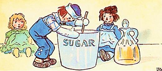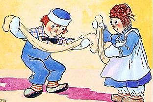 Make the taffy recipe from Betty Crocker (http://www.bettycrocker.com/recipes/taffy/4c5e2e18-9122-4ea8-b390-9463727f2260) and have your very own taffy pull, just like Raggedy Ann and Raggedy Andy.