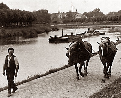 Round a bend in the canal came plodding a solitary horse, stooping forward as if in anxious thought. From rope traces attached to his collar streamed a long line, taut, but dipping with his stride, the further part of it dripping pearly drops. Toad let the horse pass, and stood waiting for what the fates were sending him.