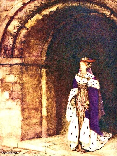 - React with anger upon learning Arthur is sending a kitchen boy to free your sister Lyonors.