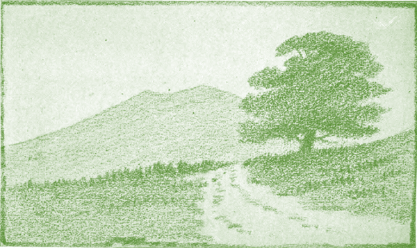 Black. Color B entirely with black. First make a graded wash from light to heavy of black, and into this wash paint the road and trees.